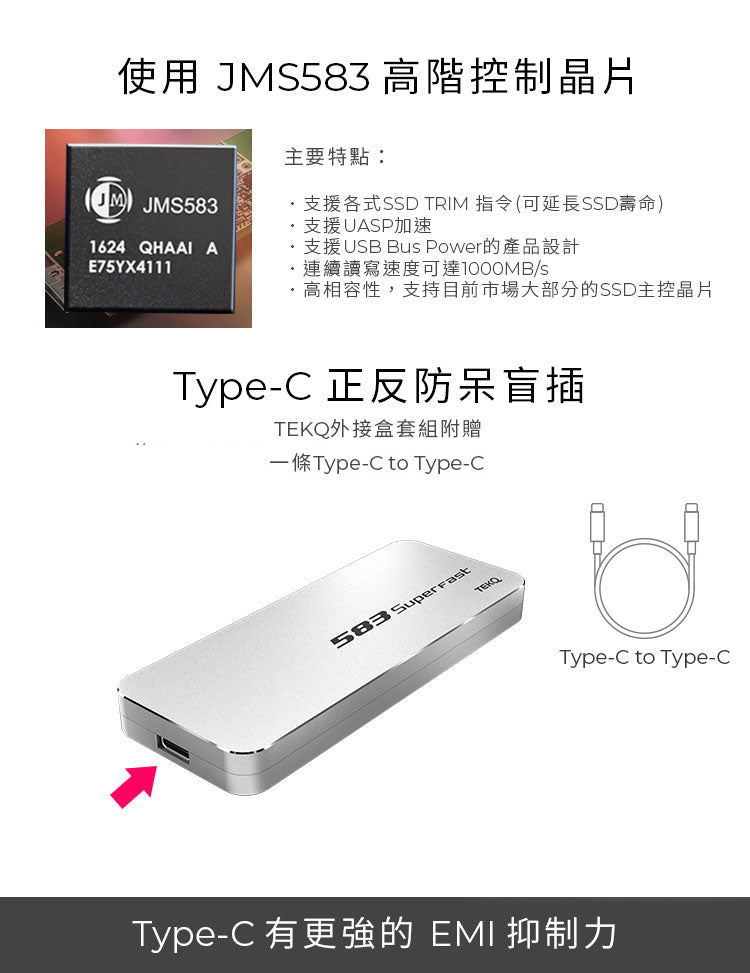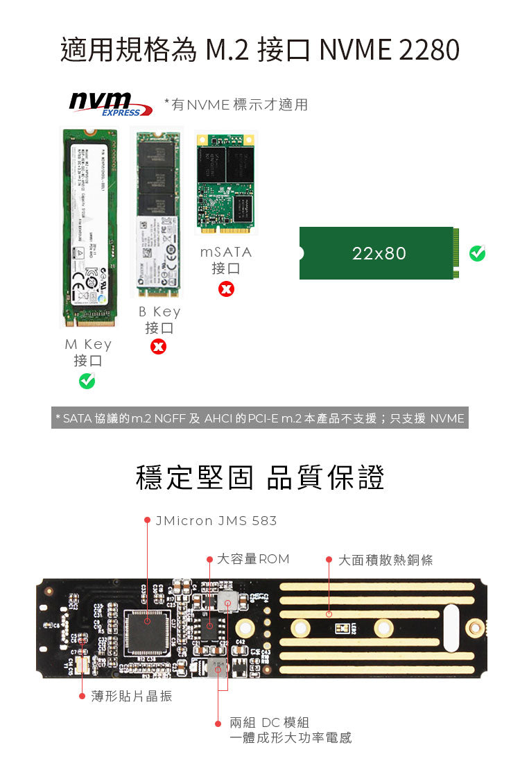 ■使用JM583高階控制晶片支援UASP加速僅適用於M-Key M.2 SSD(PCI-E NVMe)