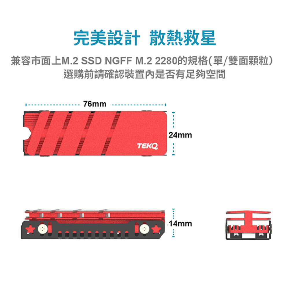 ● 支援標準 M.2 SSD NGFF M.2 2280的規格(單/雙面顆粒)● 特級散熱鋁合材 高導熱 高散熱● 多重溝槽設計,強化對流,極速散熱● 採用高成本 CNC 精密製程工藝● 尺寸76mm *24mm * 14mm● 附贈 導熱片及 螺絲起子 輕鬆安裝無負擔